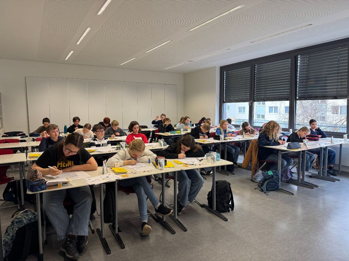 Traditionell findet die Stadtrunde der Mathematikolympiade für Schwerin und den Umkreis in unserem Goethe-Gymnasium statt. Vormittags knobeln die Schülerinnen und Schüler, nachmittags werden ihre Ergebnisse dann von ca. 50 Lehrkräften korrigiert. Aufgrund der großen Teilnehmerzahl werden einigen Klausuren auch im Weststadtcampus und im Neustädtischen Palais geschrieben.