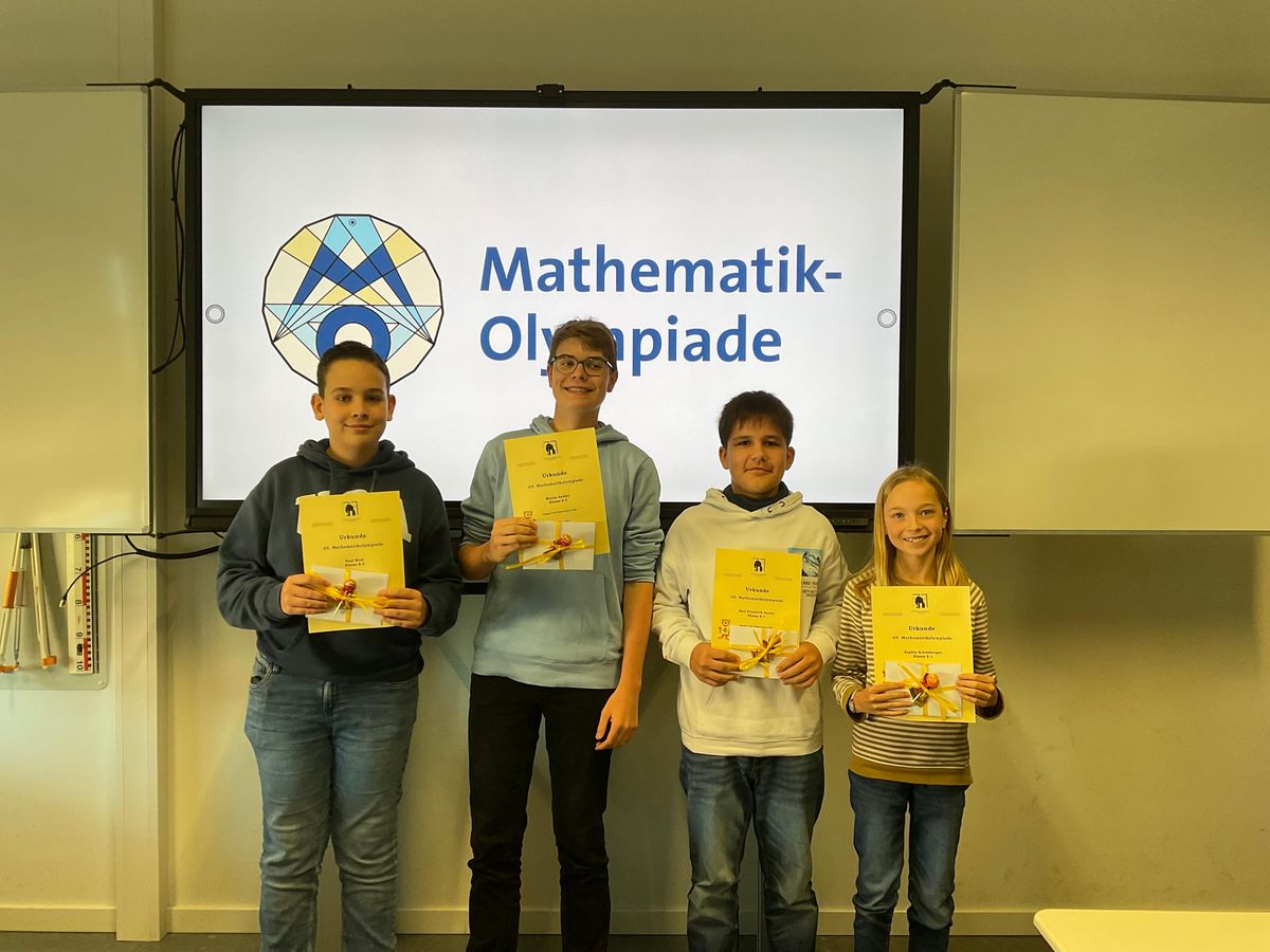 Schwerpunkt ist dabei die Vorbereitung und Auswertung der Mathematikolympiaden, aber auch die Teilnahme an anderen Wettbewerben, wie z. B. die Teilnahme am → Känguru-Wettbewerb. Hieran kann sich übrigens jeder Schüler unseres Gymnasiums beteiligen, eine Information erfolgt über die Mathelehrer.
