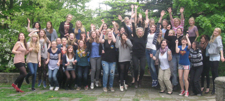 Der Name spricht für sich: Wir sind ein reiner Mädchenchor, den es seit 10 Jahren an dieser Schule gibt. Angefangen haben wir in kleiner Runde, mit sangesfreudigen Schülerinnen unter der Leitung von Frau Witt-Düring. Mittlerweile besteht der Chor aus fast 70 Sängerinnen!